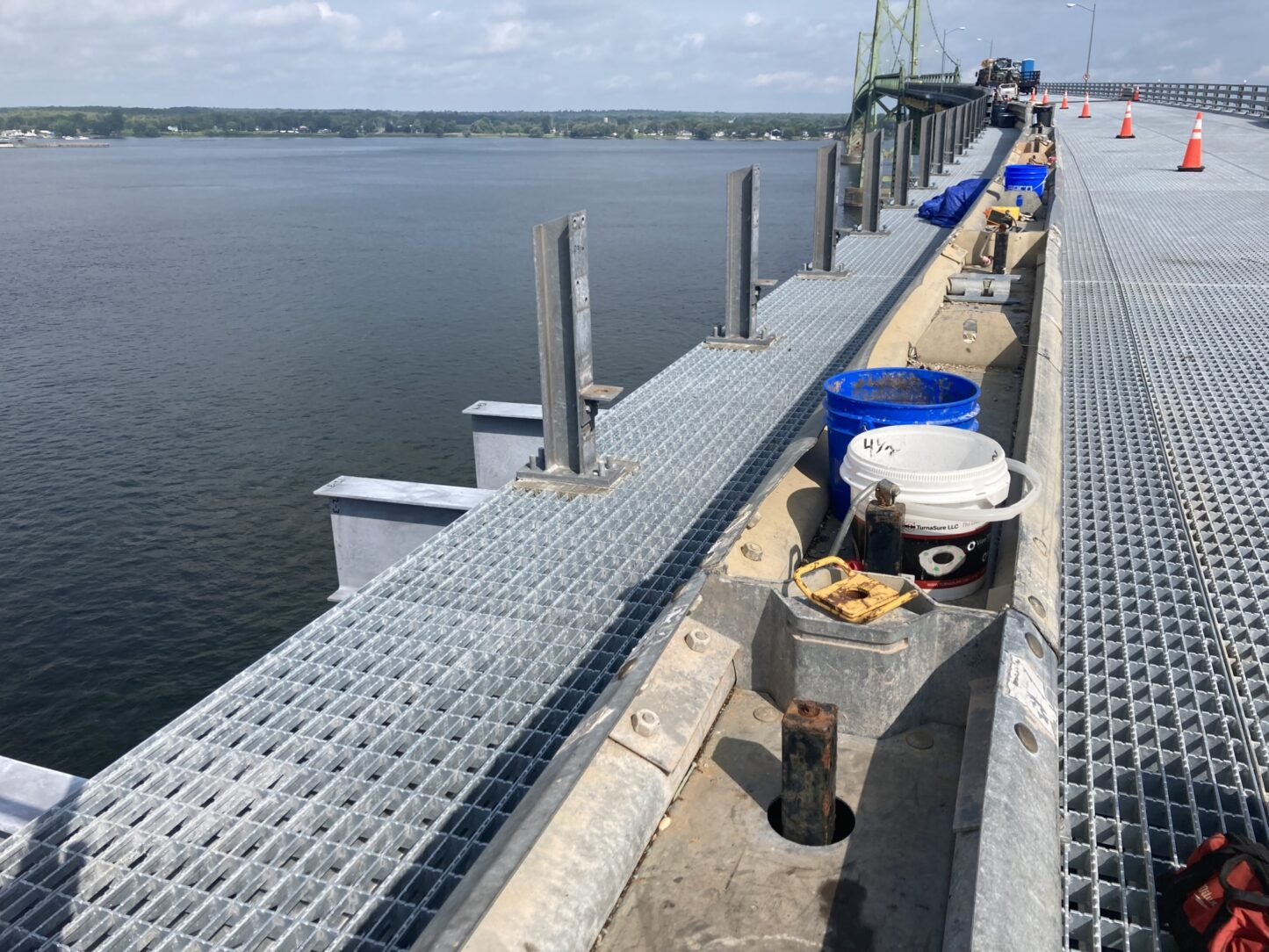The Ogdensburg-Prescott Bridge, galvanized by SSSBA member V&S Galvanizing, is a mile and a half long international cable suspension bridge that connects the United States to Canada. This bridge was originally built in 1960, and recently targeted as a structure in need of rehabilitation. This rehabilitation project utilized nearly a million pounds of steel to bring the bridge up to standards. The Ogdensburg Bridge and Port Authority partnered with the New York Department of Transportation to bring this rehabilitation to life, replacing all main span bridge decking, structural steel floor beams and stringers, raised concrete safety walks, and bridge railing systems across both approach spans and the main suspension spans.