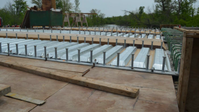 PBFTG bridge consist of modular galvanized shallow trapezoidal boxes fabricated from cold-bent structural steel plate. In 2015, the first Short Span Steel Bridge Alliance (SSSBA) installation of a PBFTG bridge for a short span application took place in Buchanan County, Iowa – the Amish Sawmill Bridge. Today, 18 states have installed this innovative bridge system.