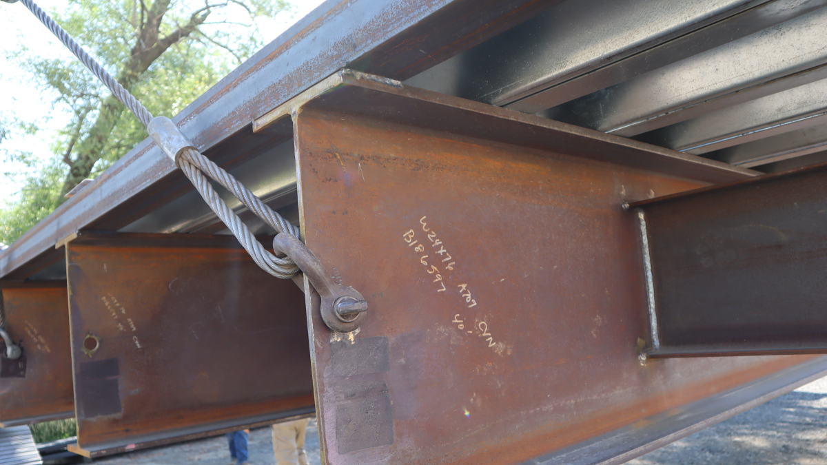 The complete bridge was shipped on one truck, with a configuration of one 12-foot module on the bottom and two 8-foot modules on top. The sill plate assemblies and steel backwalls were also shipped on the same truck.