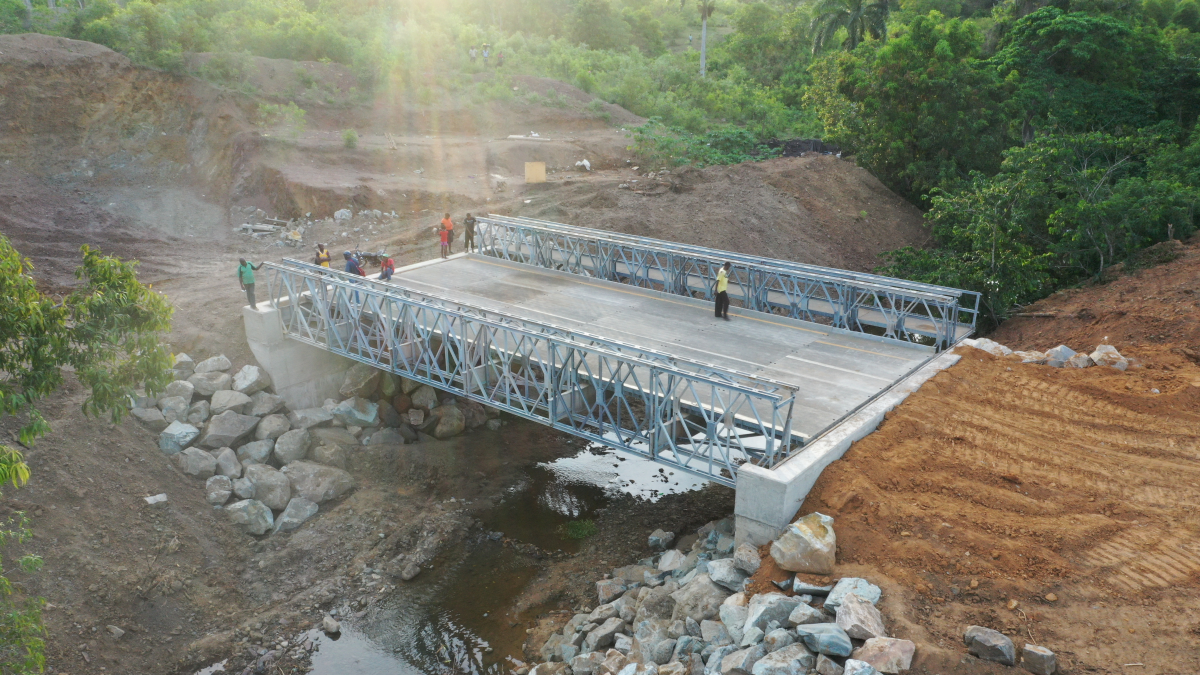 The residents of Perches relied on an unpaved road without a bridge to access their nearby hospital and industrial park, risking their lives in the rainy season to cross overflooded waters. Several thousand linear feet of the hot-dip galvanized Fore River Bridge was repurposed for a community that would otherwise not receive much attention or aid.