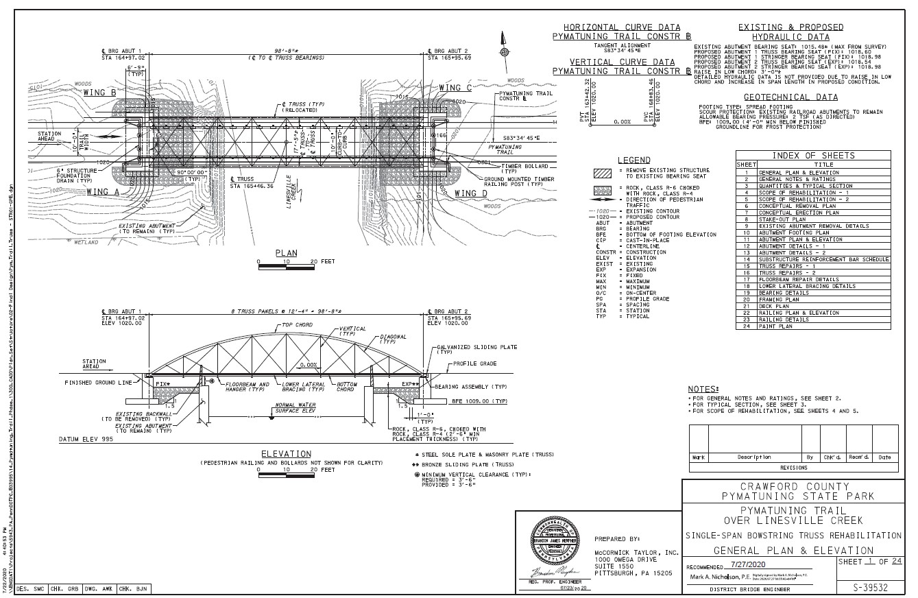 For 146 years the Messerall Truss Bridge stood over Pine Creek in Oil Creek Township, but had been closed since 1987. The truss bridge was removed, refurbished, reassembled, and relocated. In its new location, the bridge now carries the multi-use trail over the Linesville Creek.