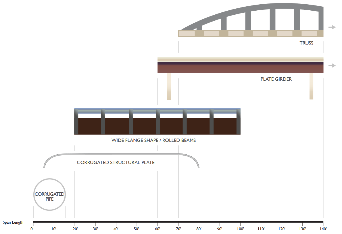 Short span steel bridges can be built quickly, using local crews, and often can be designed with prefabricated elements which provide a simpler installation and cost savings.