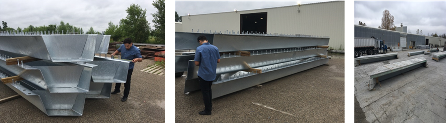 Press-brake-formed tub girder (PBTG) is a new technology for short span bridge applications. It consists of modular galvanized shallow trapezoidal boxes fabricated from cold-bent structural steel plate (watch fabrication video). A concrete deck is recommended to be precast on the girder and the modular unit can be shipped by truck to the bridge site.