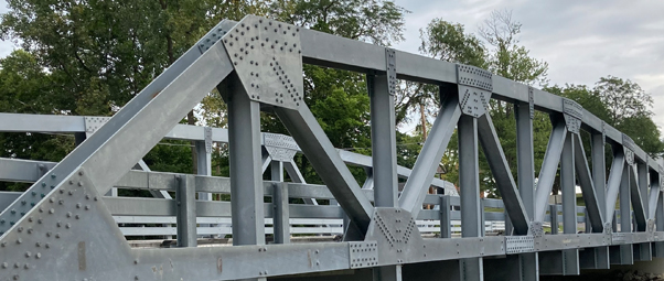 Along with widening the path, the new bridge features hot-dipped galvanized steel trusses. Galvanization bonds zinc to steel, resulting in a much more rugged and reliable bridge. Galvanizing also eliminates corrosion for up to 100 years. U.S. Bridge was so confident in the galvanizing process that they provide a 35-year warranty on their galvanized steel beam bridge.